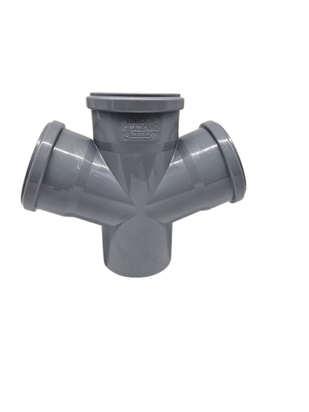 Gray double branch pipe with 3 sleeves.