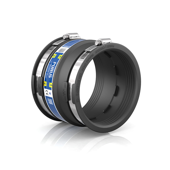 The Purus flexi transition coupling is used to connect two wastewater pipes with different dimensions as well as wastewater pipes with the same or different material and surface structure. Rubber coupling flexi has two sides equipped with hose clamps for external installation on wastewater pipes, which is easy to install in a few minutes. Rubber coupling Flexi is suitable for both vertical and horizontal installation and is approved for concealed installation. The material is UV-resistant.