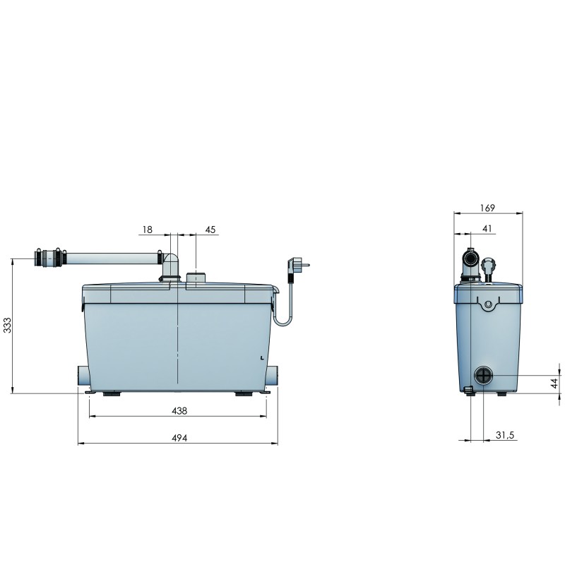 Bdt pump for kitchen and laundry. Sewage pump with easily accessible container and electronics for easier maintenance.