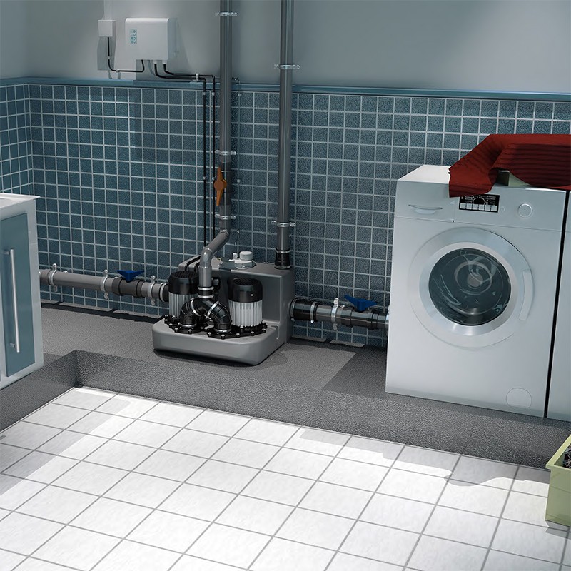 Sanicom 2 is a heavy-duty pumping station for the intensive pumping of bdt water in commercial spaces.