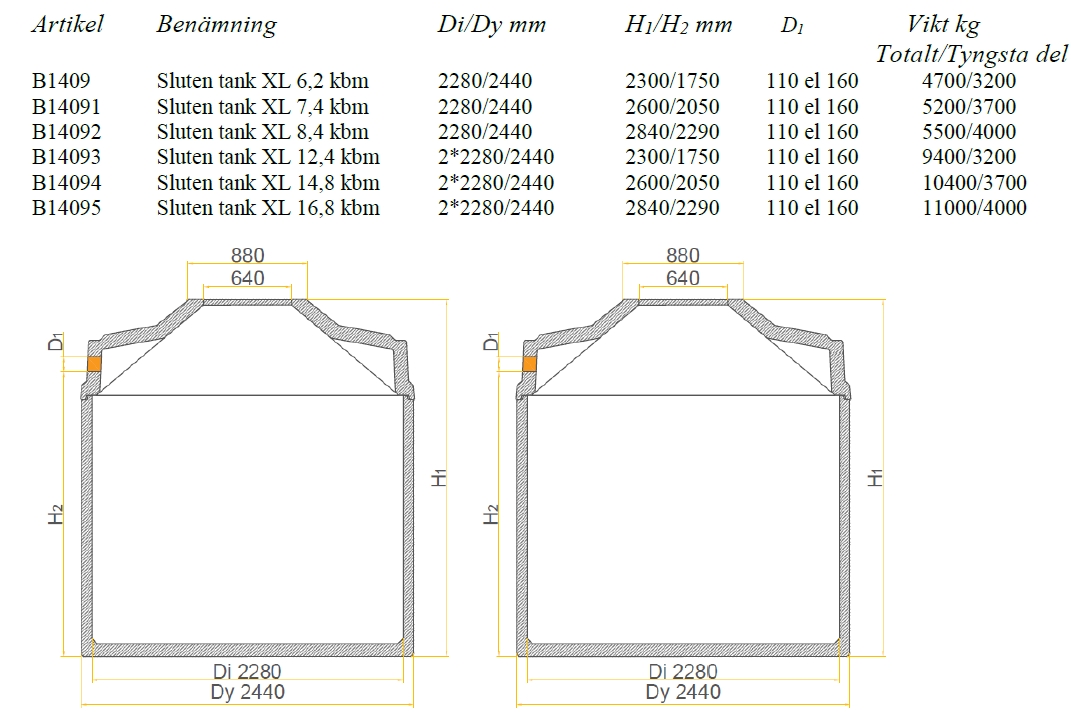 Tranåsbrunnen XL concrete closed tank 8.4 m³