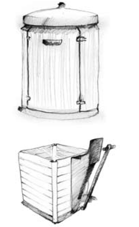 Hushållskomposter Kommunernas grundkrav vid kompostering av hushållsavfall är en isolerad behållare med lock och en nätbotten som gnagare inte kan ta sig in i.