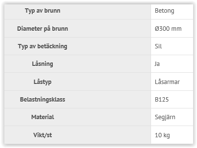 Betäckningen uppfyller standarden SS-EN124.