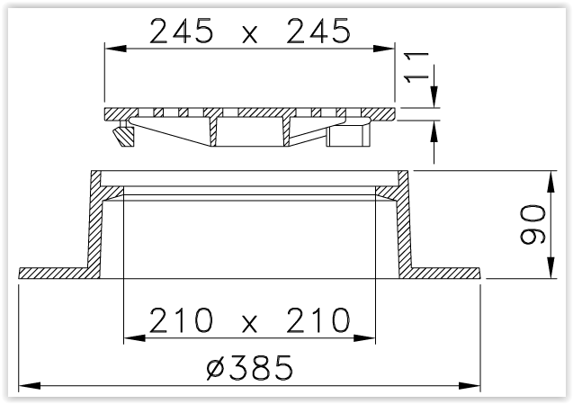 Komplett lättbetäckning i segjärn, utan skruvar. Sil med låsarmar.