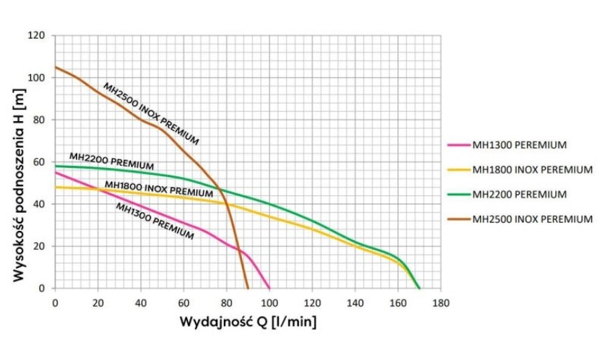 Pumpen MH 1300 Inox Premium har en enfasmotor och kan användas för dricksvatten för att försörja vatten till bostadshus, gårdar, industriföretag etc