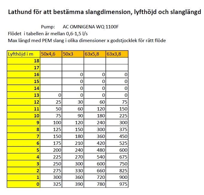 Obs denna pump kräver 50mm PEM slang om man ska ha den till avlopp med wc vatten.