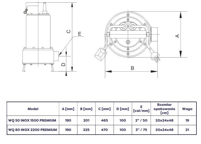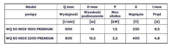 WQ 80 INOX 2200-pumparna har designats för att minimera risken för igensättning orsakad av stora fraktioner av fasta organiska föroreningar i det pumpade mediet.