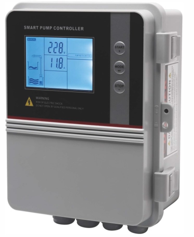 Komplett med automatikskåp Smart Pump med kontaktormotorskydd, överströmsskydd, start-, stop-, drifttidsmätare och visuell drifttidsstatus.