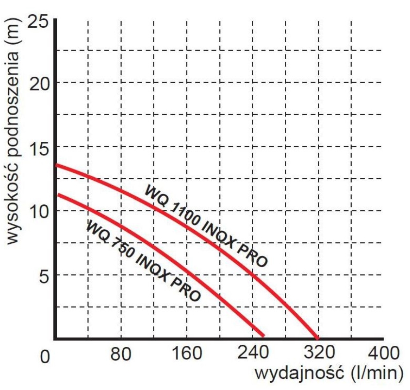 WQ 1.1 INOX PRO Premium använder en 230V motor som genererar 1,1kW effekt. Detta gör att du kan uppnå en maximal kapacitet på 320 liter i minuten och max lyft höjd är 3 meter.