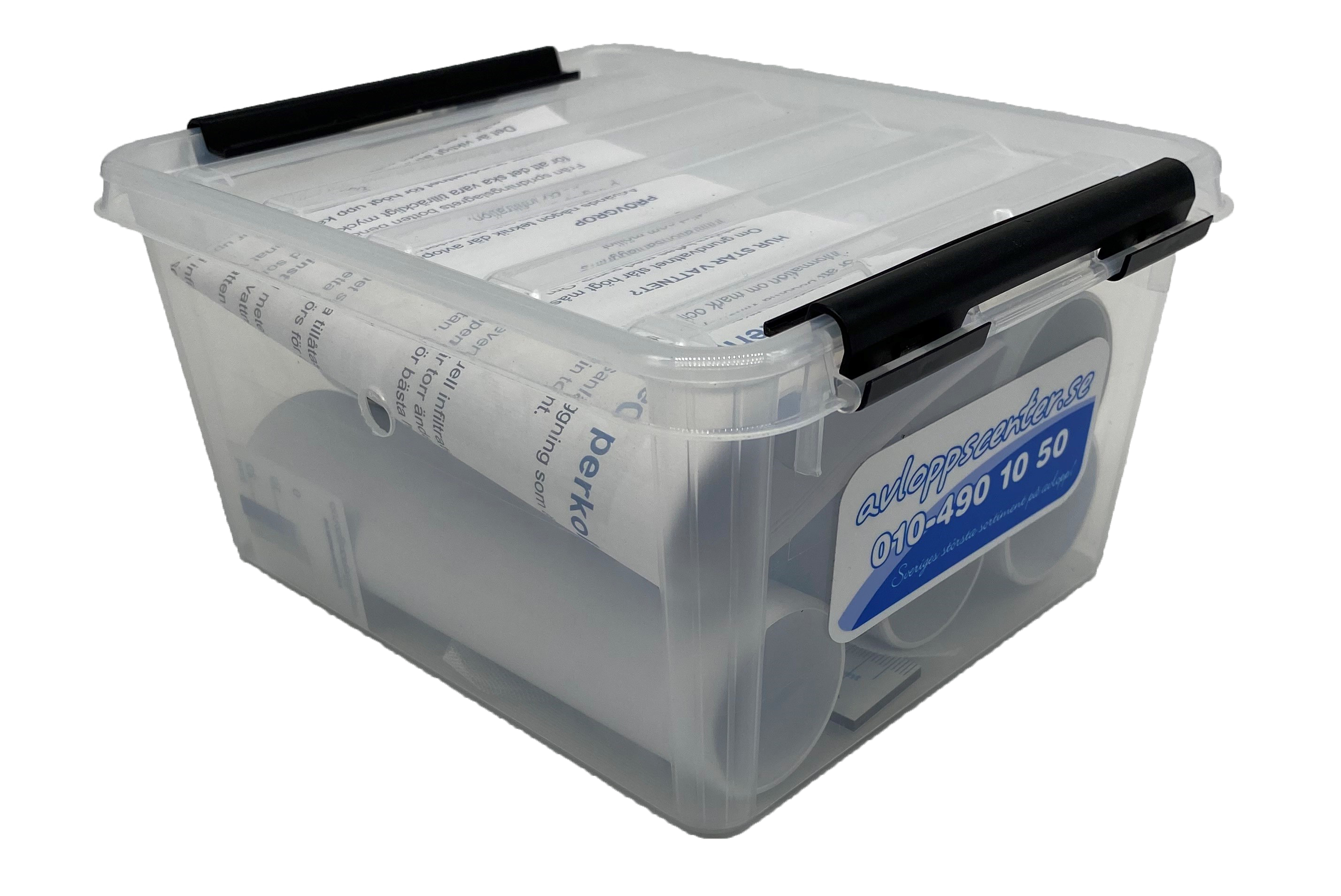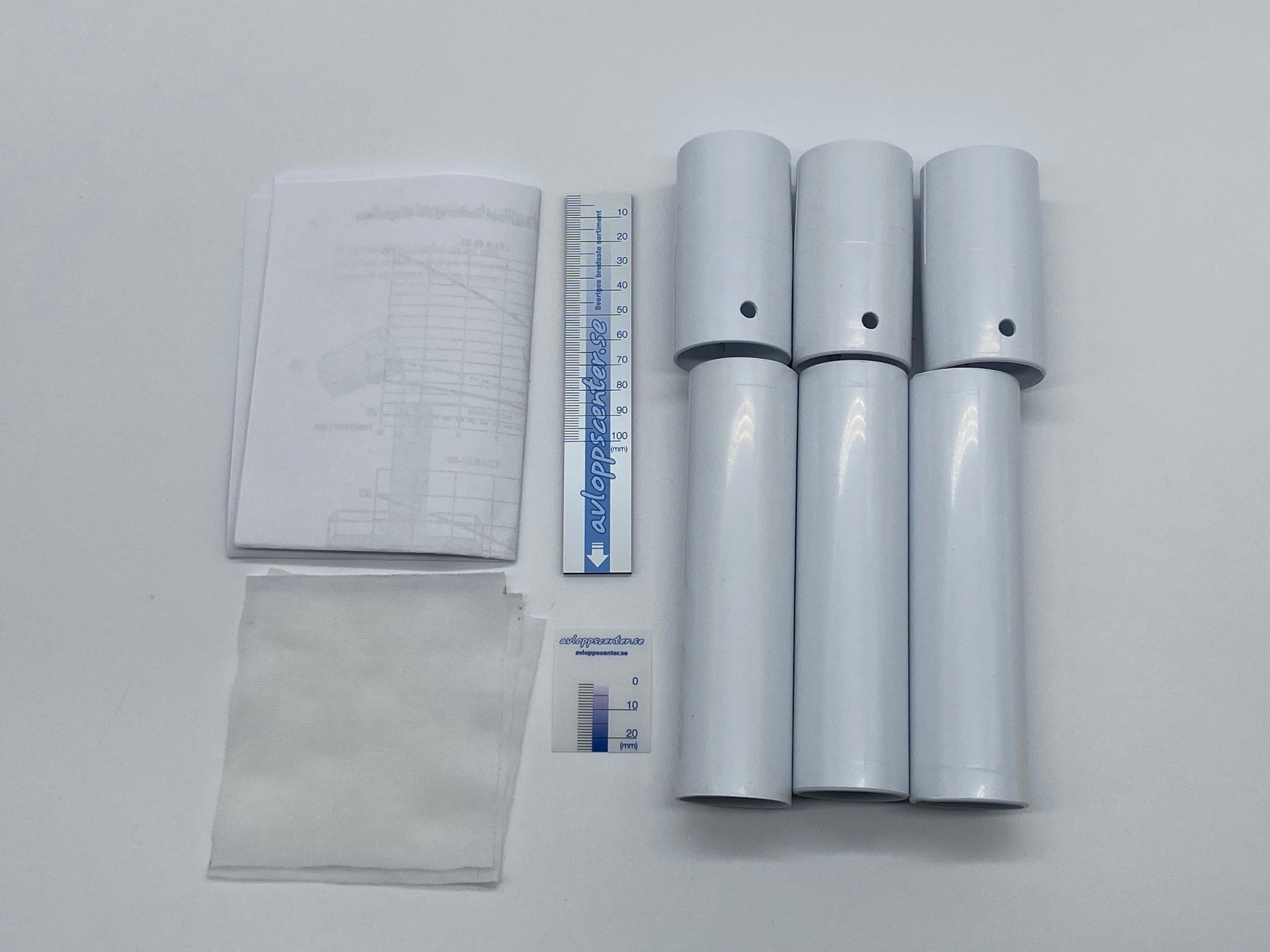 Komplett kit som innehåller allt du behöver för att utföra perkolationstest i rör.