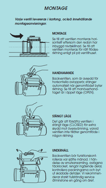 • Vattentäthet hos ventilhuset vid tryck uppgående till 0,5 bar.