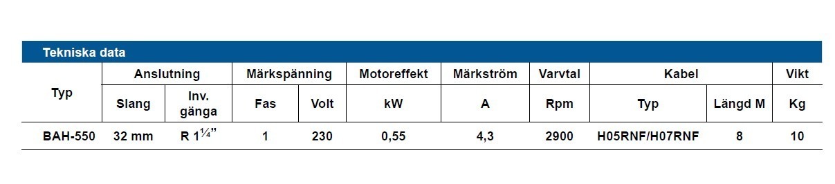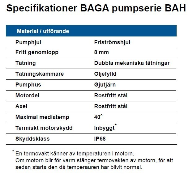 För pumpning av förorenat vatten. För grundvattensänkning eller från pumpgropar. Pumpen klarar partiklar upp till 8 mm.