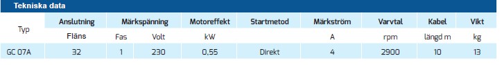 GC pumpen är en skärande tryckavloppspump försedd med ett kraftigt skärsystem som skär sönder föroreningar i avloppsvattnet, så att man kan pumpa i tryckledningar med små dimensioner PEM 40. Pump avsedd för ett hushåll.