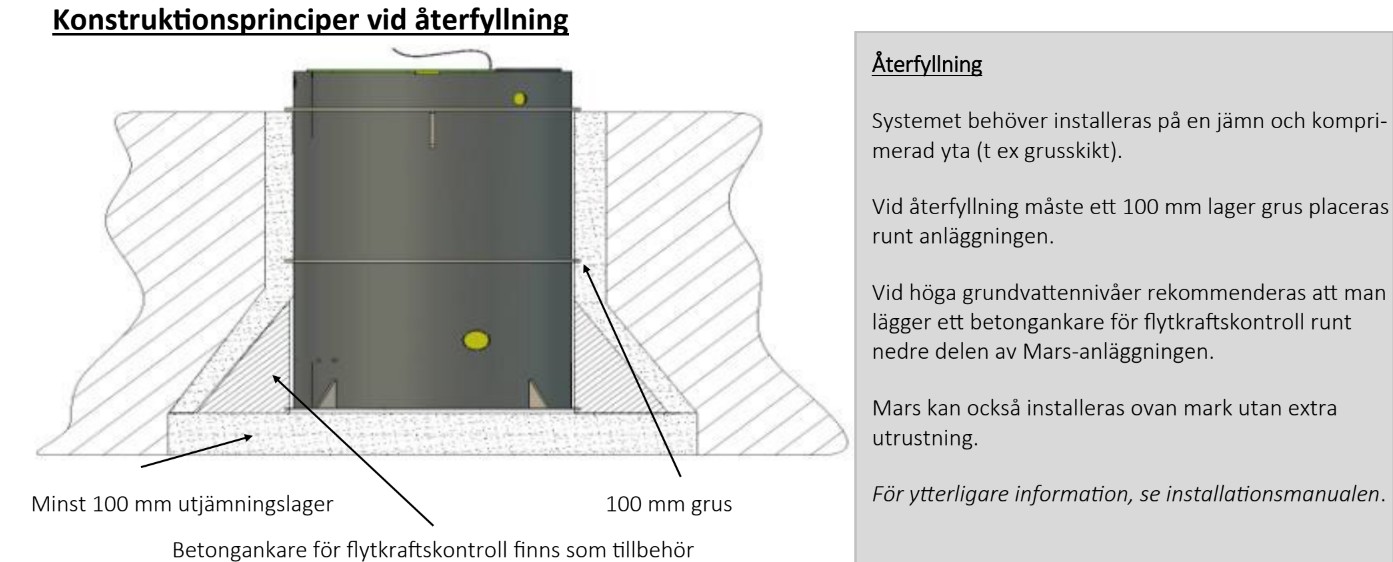 Smart installation då inloppet är lågt i botten 1580 mm under mark och utloppet är högt 350 mm under markyta, dvs man vinner 1230 mm i höjd.