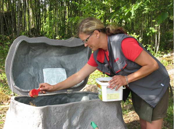 •Täck alltid köksavfall som du har lagt i komposten med ett lager av Barkströ för Komposten och Torrklosetten