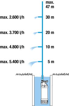 Med en diameter på bara 149 mm kan du till och med använda pumpen i brunnar från 150 mm i diameter. Den 23 m långa avledningskabeln och den extra långa anslutningskabeln på 20 m ger många valmöjligheter. Höljet och anslutningen i högkvalitativt rostfritt stål skyddar vid undervattensanvändning och ger tillräcklig stabilitet även vid fast rördragning.