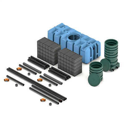 Komplett anläggning för BDT-vatten, 2 hushåll (10 personer). 10-års funktionsgaranti på hela anläggningen.