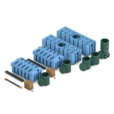 IN-DRÄN Biobädd 5ce, WC+BDT, hög skyddsnivå, 10 personer, 2 hushåll. Innehåller: 1 x slamavskiljarpaket SA 6012ce 2 x ekotreat wifi, fällningsenhet 2 x paket IN-DRÄN Biobädd 5 1 x paket kombibrunn Fällningsmedel säljs separat.
