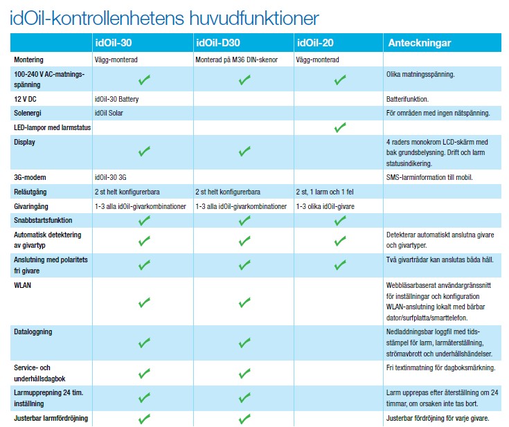 snabbstartsfunktion. IdOil-30 erbjuder mycket enkel idrifttagning, flexibelkonfiguration lokalt via WLAN, samt larmloggning. Finns även med 3Gmodem och 12 V DC-driftsspänning.