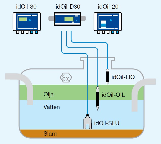 Upp till tre idOil-givare av vilken typ som helst kan anslutas polaritetsfritt, och de identifieras automatiskt med en