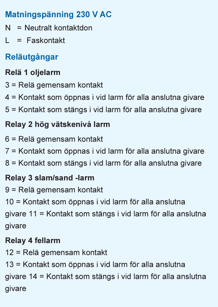 • LED lampor för givaralarm, givarfel och matningsspänning