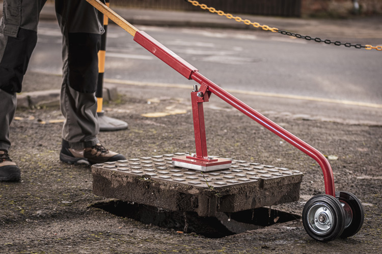 Liftplaq Spettmodell – Brunnslocksöppnare med hjul och magnetskydd