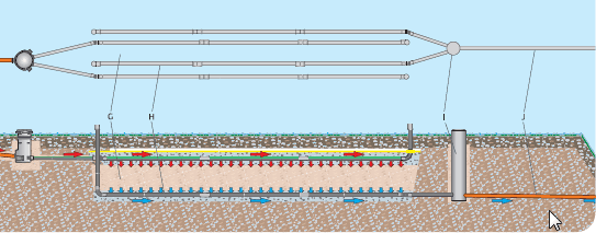 Det renade vattnet leds från uppsamlingsbrunnen genom ett utloppsrör