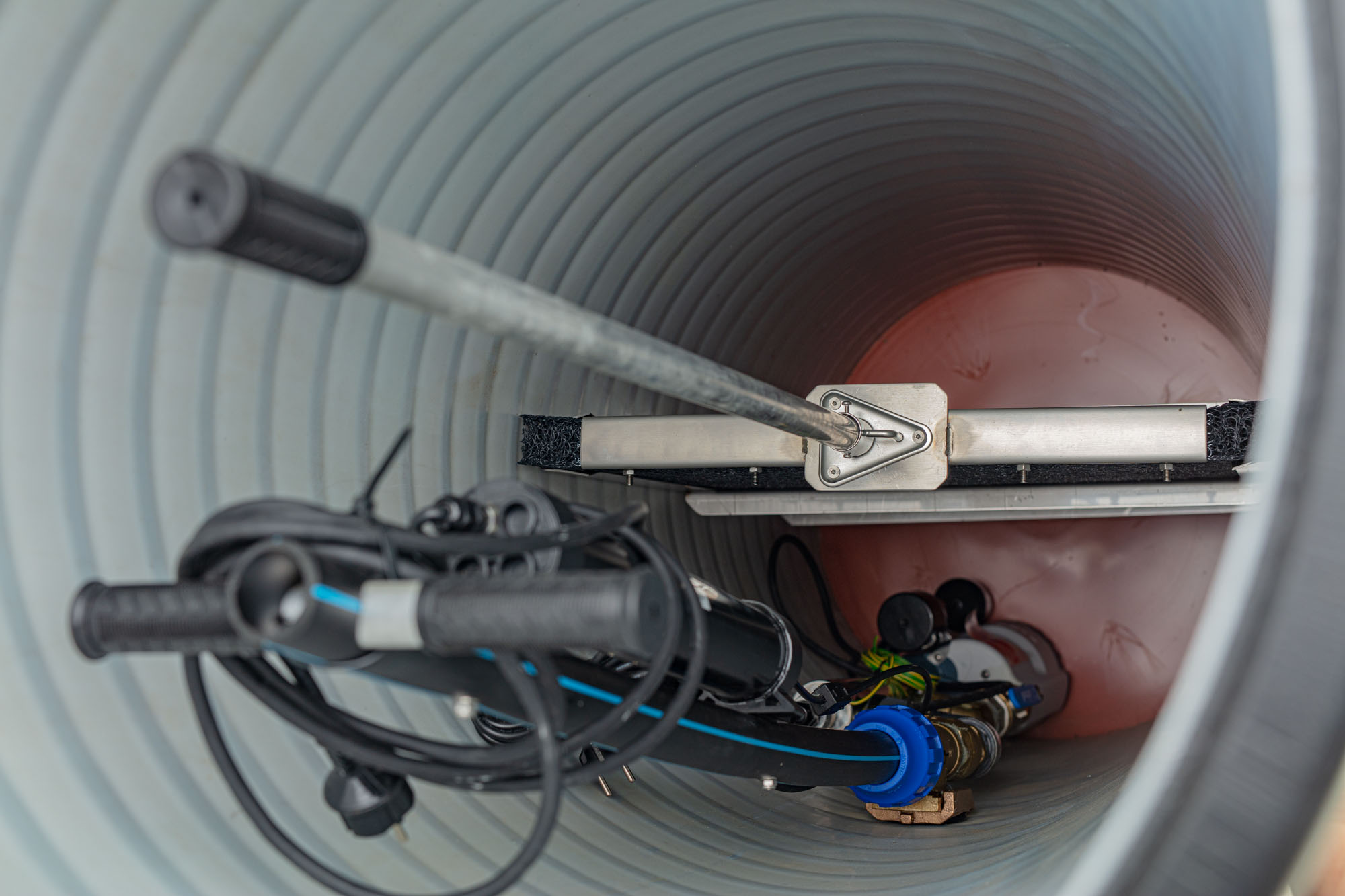 Matala UV pumpbrunn klarar höga flöden och ojämn belastning som tex från ett reningsverk som renar i satsvis. 40 watt UV, max höjd 245cm.