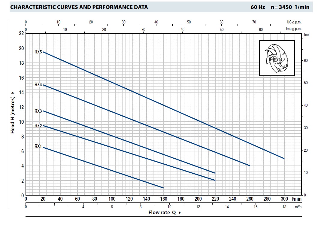 Serie RX rostfria dränkbara länspumpar med centrifugalhjul för att pumpa dagvatten från ett hushåll genom en tryckspillvattenledning.