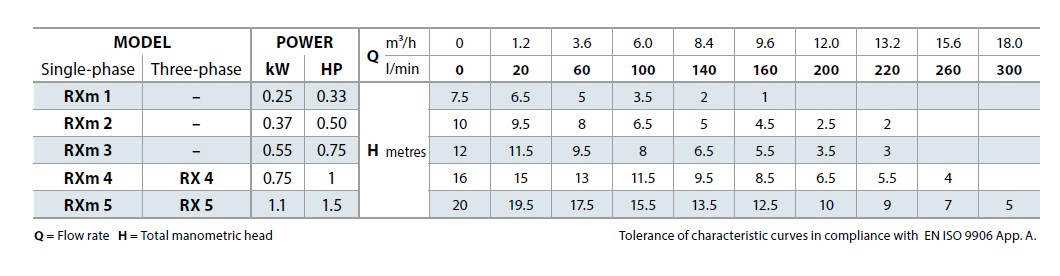 Serie RX rostfria dränkbara länspumpar med centrifugalhjul för att pumpa dagvatten från ett hushåll genom en tryckspillvattenledning.