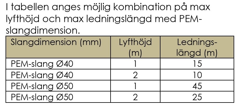 Om PEM-slang Ø50 väljs behövs annan plaströrskoppling.