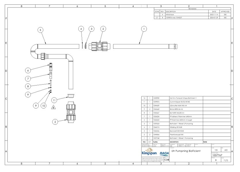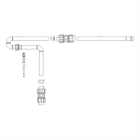 Tillbehörssats innehållande rör och delar för att koppla pumpat avlopp till Baga BioFicient reningsverk.