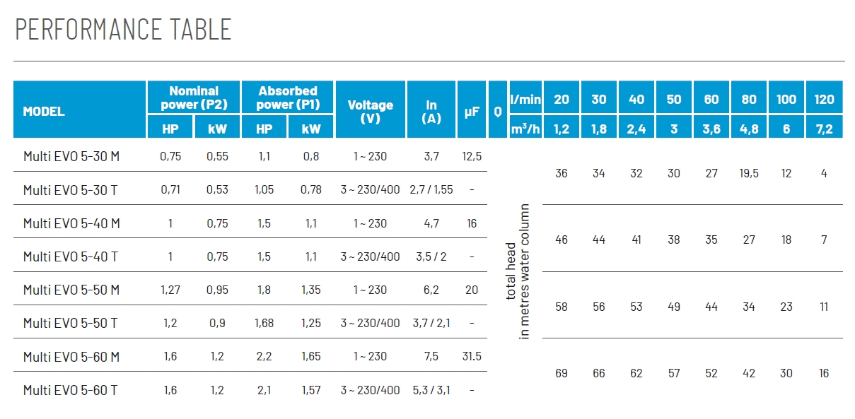 Elektriska pumpar i Multi EVO-serien erbjuder följande fördelar: