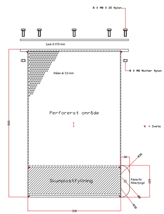 Tillverkad av korrosionsfritt material, POLYETEN.
