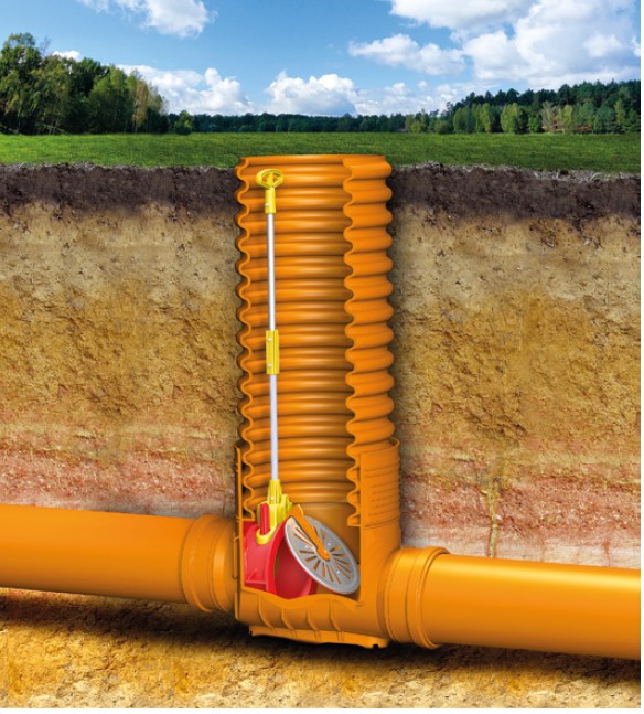 Brunnsbotten med bakvattenventil är utformad för användning i avlopps eller regnvattensystem. Brunnen fungerar som inspektions-/rensbrunn och skyddar byggnader från översvämning Den rekommenderade platsen för installation är ett avloppsrör mellan byggnad och huvudavloppsnätet.