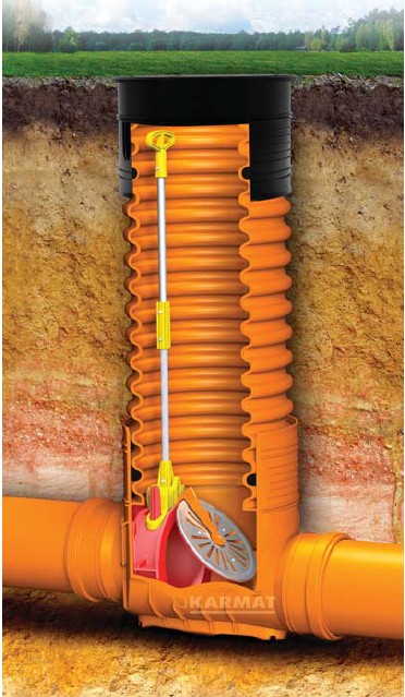 Skyddar byggnader från översvämningar. Monteras på avloppsrör mellan byggnad och huvudavloppsnätet.