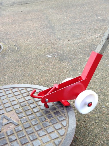 En mycket omtyckt locköppnare med hjul som sparar armar och rygg. Med locköppnaren kan du enkelt och effektivt öppna de flesta brunnslock med minimal muskelkraft. Som hävarm till locköppnaren kan du använda ett vanligt spett eller liknande. (Spettet medföljer ej)