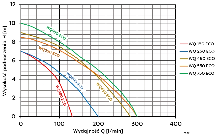 WQ 250 ECO-pumpen är en mycket bra dränkbar pump designad för att pumpa såväl smutsigt vatten som regnvatten och gråvatten som innehåller organiska föroreningar med en maximal diameter som inte överstiger 18 mm.